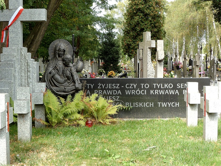 Po wojnie ekshumowane ciała przeniesiono na cmentarz przy ulicy 2 Sierpnia. Utworzono oddzielną kwaterę z pomnikiem, którego główny element stanowią krzyż i rzeźba Matki Boskiej trzymającej na rękach martwego powstańca. Na tablicy obok widnieje inskrypcja: "Ty żyjesz - czy to tylko sen, a prawda wróci krwawą raną? Ty żyjesz w pamięci bliskich twych".