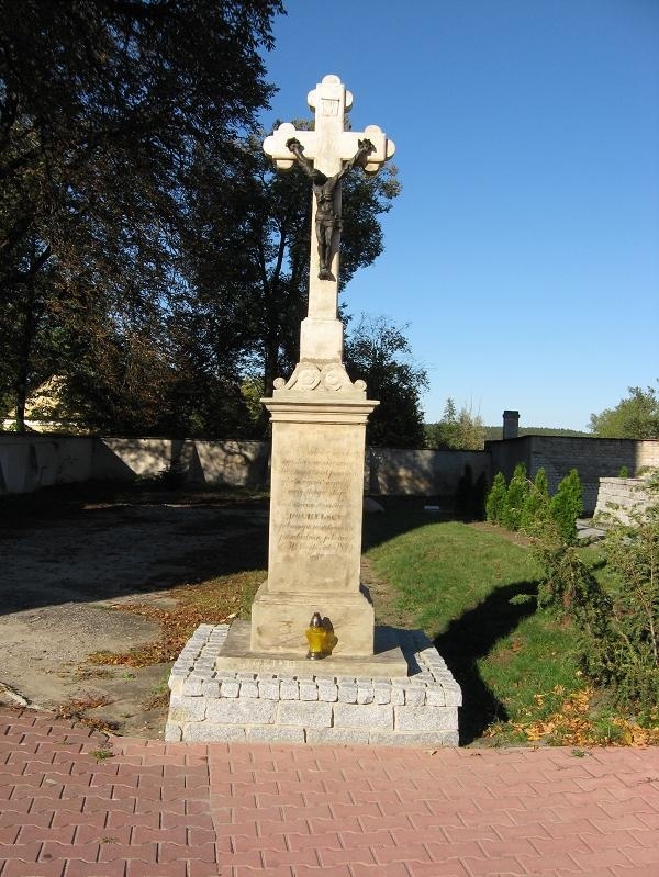W Ćmielowie przy ul. Ostrowieckiej, tuż koło kościoła parafialnego stoi przydrożny krzyż. Został ufundowany przez Ewę i Stanisława Pochylskich w 1849 roku. Kamienny krzyż osadzony jest na wysokim cokole z inskrypcją o stosownej treści: "Przez twą miłość w męce krzyżowej, ku nam okazanej, zbaw nas, Jezu, od powietrza, głodu, ognia, wojny i wszystkiego złego". Obiekt jest po renowacji i znajduje się w bardzo dobrym stanie.