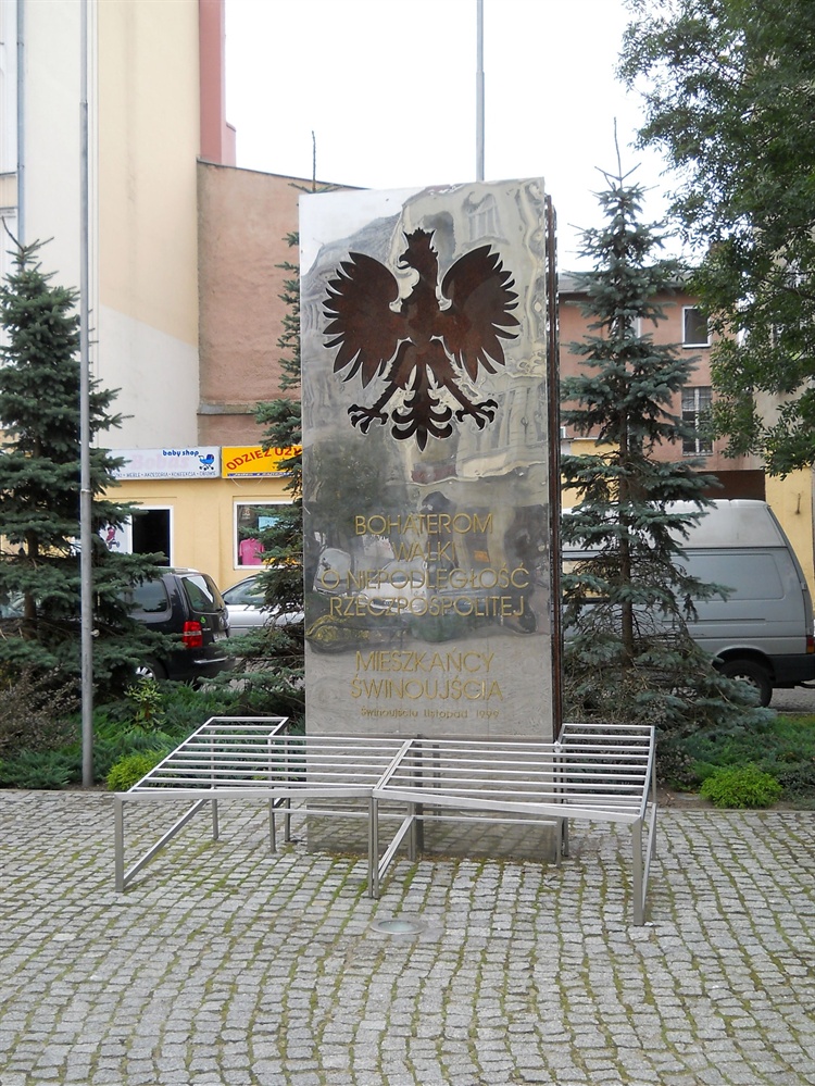 Pomnik „Bohaterom walk o niepodległość Rzeczpospolitej” ufundowali mieszkańcy Świnoujścia w 1999 roku. Oprócz napisu umieszczonego na pomniku znajduje się na nim orzeł w koronie, który jest jakby wycięty w płycie czołowej. Niestety monument jest trochę nieczytelny przy słonecznej pogodzie.