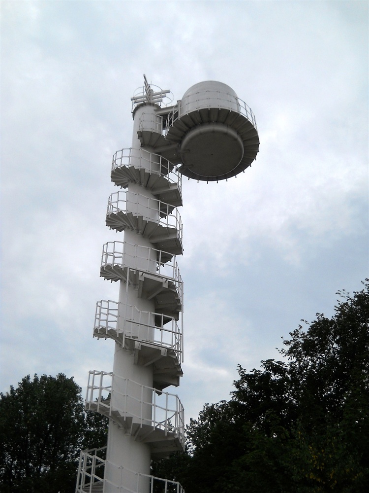 Stawa nawigacyjna zwana również stawą galeriową znajduje się na stałym lądzie, przy zachodnim brzegu Świny. Jest to biała wieża, z kolistymi schodami. Znakiem szczytowym jest trójkąt, skierowany wierzchołkiem w dół. Z boku, u szczytu, od strony morza umocowana jest cylindryczna laterna otoczona galeryjką. Wysokość źródła światła wynosi 22,7 m nad średni poziom morza.