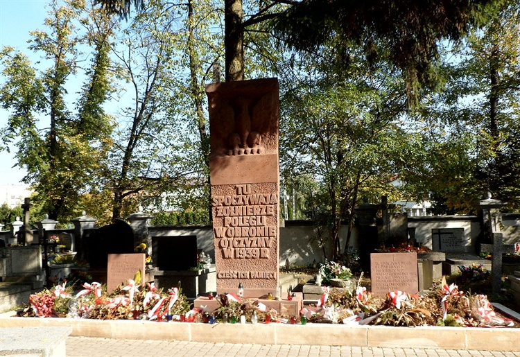 Na cmentarzu parafialnym w Grodzisku Mazowieckim pochowano jedenastu polskich żołnierzy, którzy zginęli podczas kampani wrześniowej. Polegli w okolicach miasta pochodzili z różnych oddziałów Wojska Polskiego broniących dostępu do Warszawy przed nacierającymi Niemcami. W 1940 r. do tej mogiły złożono również szczątki pięciu nieznanych żołnierzy z czasu wojny polsko-bolszewickiej, które przeniesiono po zajęciu części nekropolii przez Niemców.