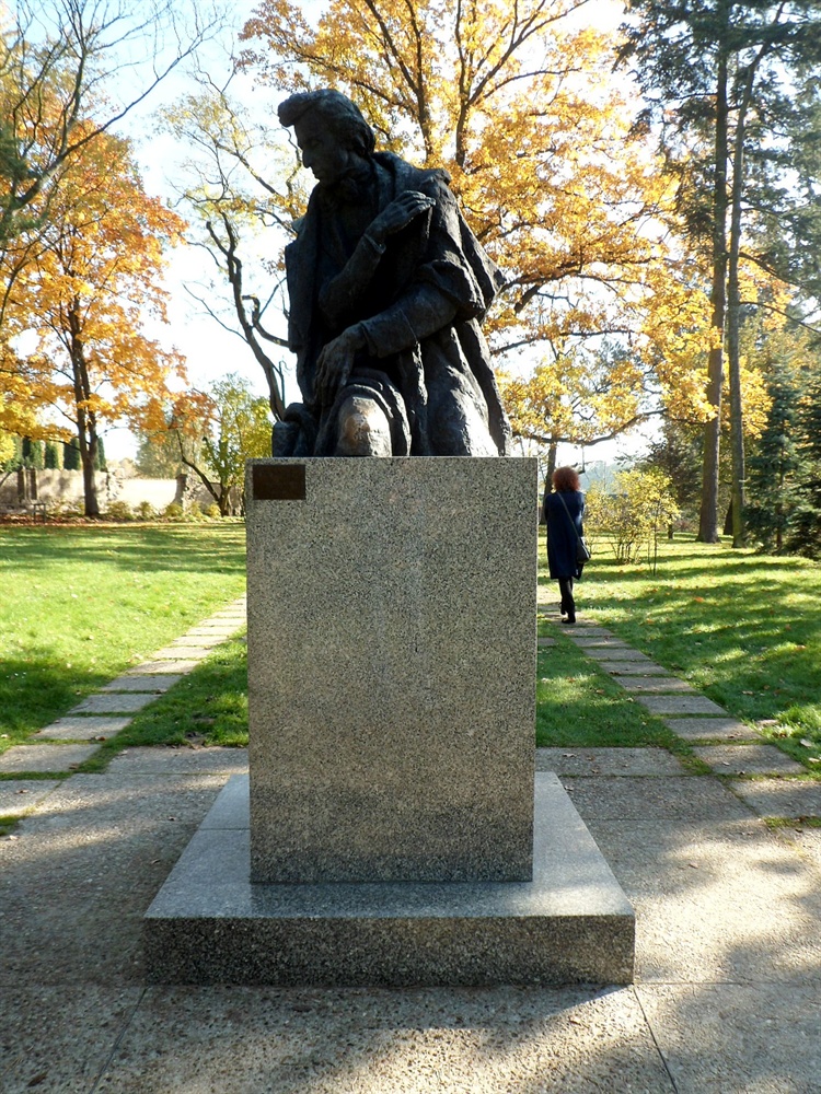 Spacerując po pięknym parku otaczającym dom urodzenia Fryderyka Chopina w Żelazowej Woli, dotrzemy do pomnika kompozytora znajdującego się na zapleczu dworku. Pomnik, którego projekt opracował w 1954 r. znany rzeźbiarz i medalier Józef Gosławski, odlano w brązie w 1968. Obelisk odsłonięto uroczyście 13 lipca 1969 r. Rzeźbę Chopina umieszczono na granitowym cokole. Ciekawostką jest to, że model rzeźby kompozytora stanowił ozdobę Międzynarodowych Konkursów Pianistycznych im. Fryderyka Chopina odbywających się od 1927 r.