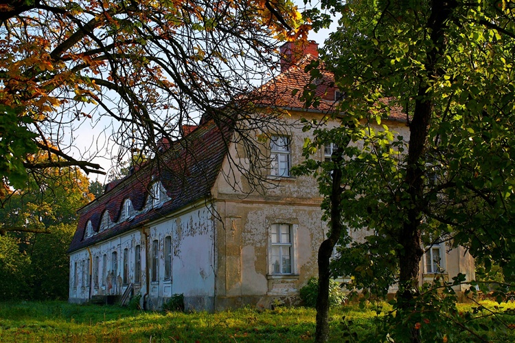 Barokowy dwór z pięknym mansardowym dachem powstał ok. 1755 r. Umieszczoną w tympanonie datę budowy można jeszcze odczytać, ale widoczny wcześniej monogram „JR” pozostał już jedynie we wspomnieniach i na starych fotografiach.