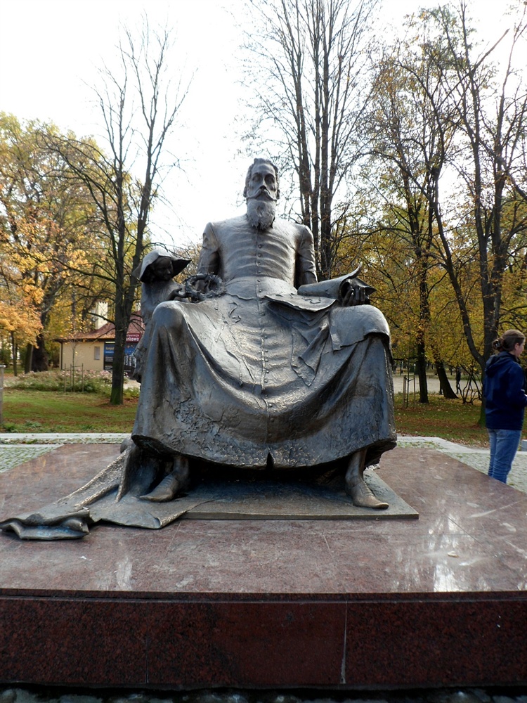 Wybitny poeta doby renesansu został uhonorowany w Radomiu pomnikiem na skraju Parku Kościuszki, przy ulicy Stefana Żeromskiego. Imponujący obelisk autorstwa rzeźbiarza Jana Kucza odsłonięty został w 2006 r. Na granitowym, płaskim postumencie umieszczona jest wykonana z brązu rzeźba poety. Jan Kochanowski siedząc obejmuje prawą ręką córkę Urszulę, natomiast w lewej trzyma otwartą książkę.