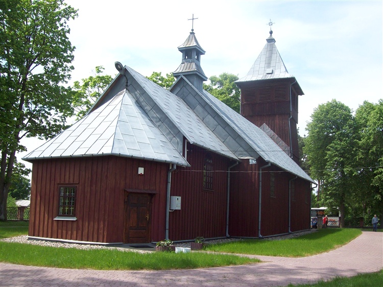 Kościół drewniany, konstrukcji słupowo-ramowej, obustronnie szalowany, w stylu podhalańskim. Orientowany, na planie wydłużonego prostokąta. Nawa główna poprzedzona kruchtą z nadbudowaną dwukondygnacyjną wieżą na planie kwadratu, o ścianach lekko zbieżnych ku górze, zwieńczonych izbicą z galeryjką i czterospadowym stożkowym dachem.
