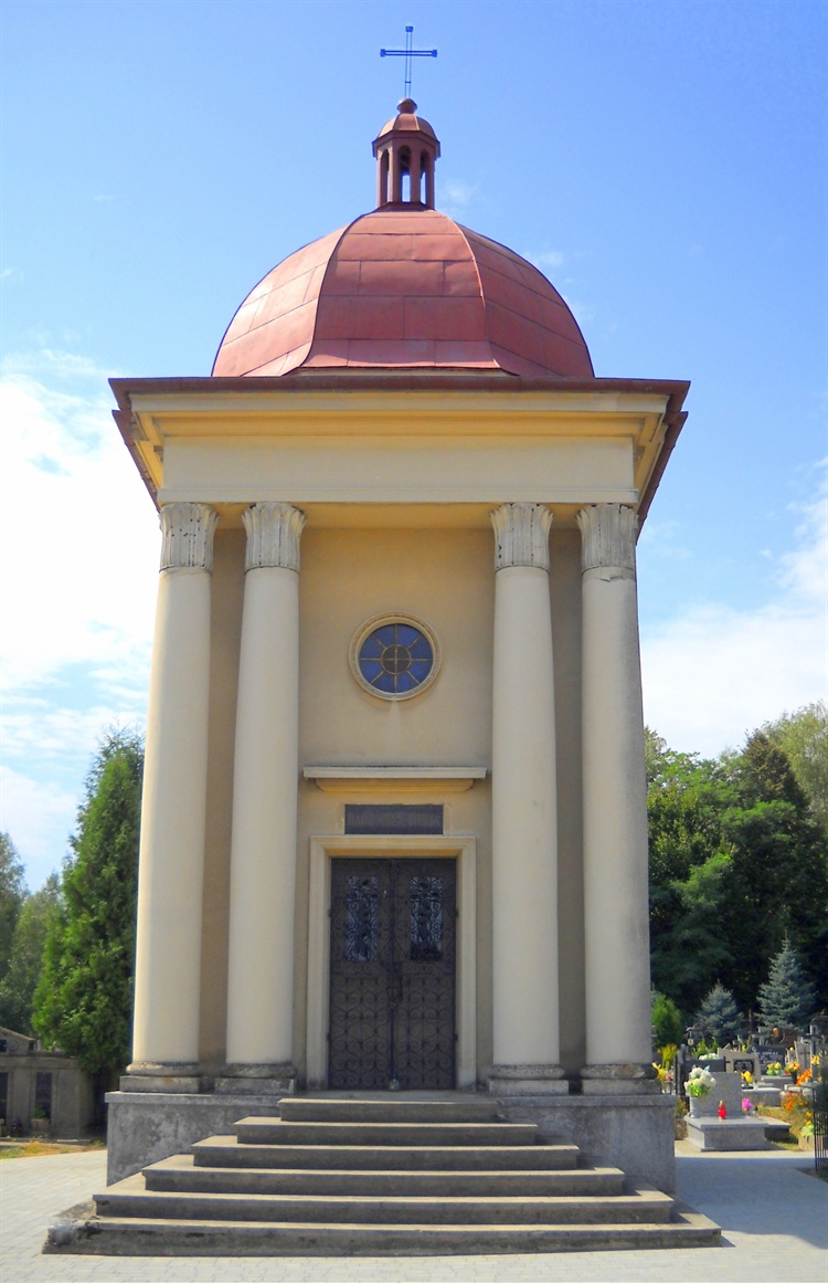 Kaplica grobowa na cmentarzu parafialnym jest najpiękniejszym zabytkiem Żołyni. Powszechnie nazywana jest "kaplicą Stachyrów", chociaż właściwym fundatorem był Stanisław Dziurzyński i jego siostra Elżbieta wraz z mężem Józefem Stachyrą. Fundatorzy pochodzili z zamożnych rodzin, Dziurzyński był prawnikiem ze starej lwowskiej szkoły, a Stachyra nauczycielem i dyrektorem szkoły w Żołyni. Monumentalna kaplica została wzniesiona w okresie międzywojennym, ale zamiar jej wybudowania zrodził się o wiele lat wcześniej i obecny jej wygląd odbiega znacznie od planów pierwotnych.