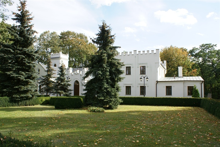 Dwór został wzniesiony w połowie XIX w. w stylu neogotyckim, przez rodzinę Kozarskich wg projektu architekta Henryka Marconiego. Spoglądając na dwór nie sposób nie zauważyć ożywiających elewację ryzalitów. Dwa znajdują się od strony parku natomiast trzy od strony wjazdu.