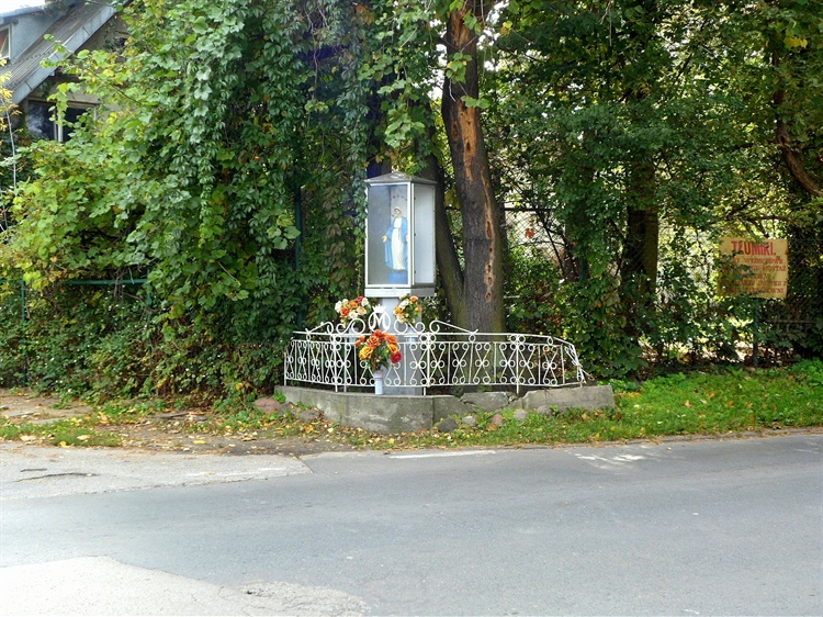 Mieszkańcy osiedla skupionego wokół stacji EKD, oddając się w opiekę Matce Bożej, ufundowali jej kapliczkę u zbiegu ulic Kolejowej i Brzozowej. Kapliczka ma formę słupową z dużą, oszkloną skrzynką, w której umieszczono figurę Matki Boskiej Niepokalanie Poczętej. Obiekt od ulic odgradza z dwóch stron metalowy płotek na murowanym fundamencie.