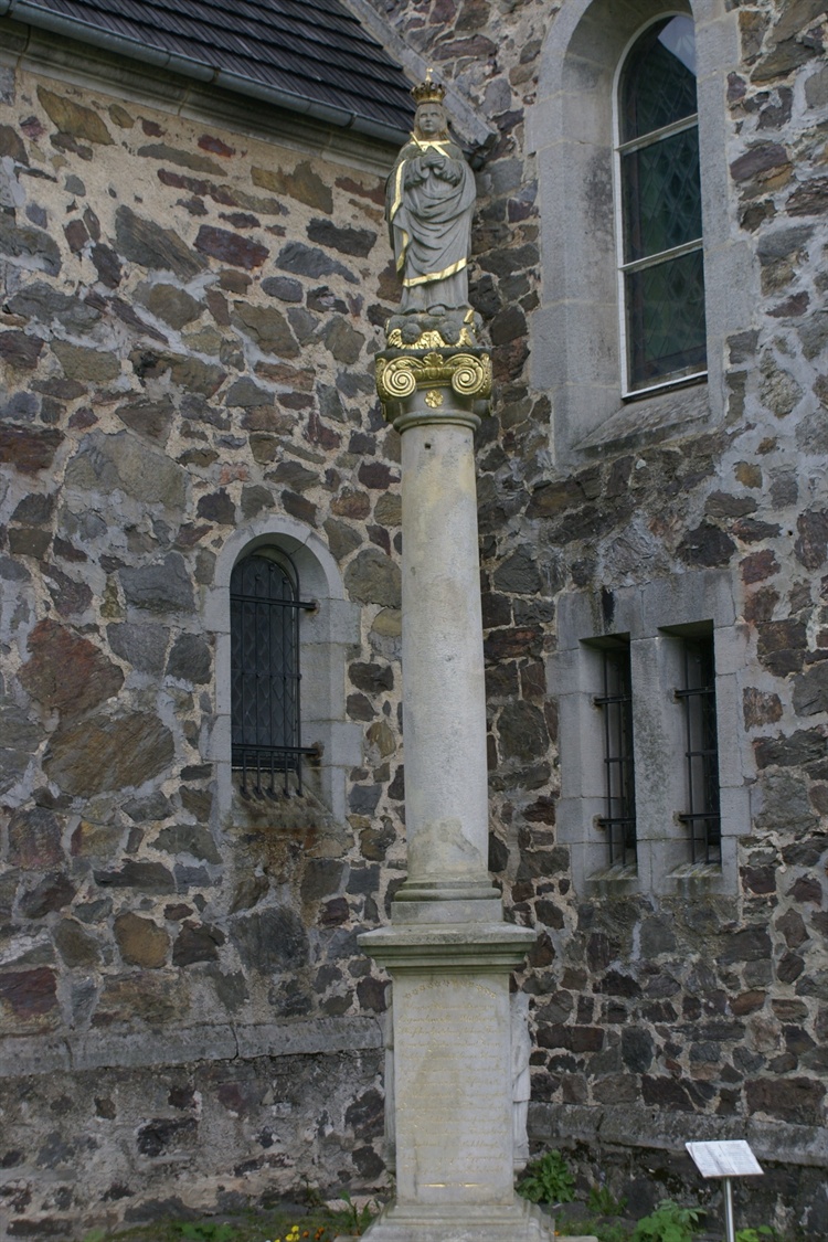 Obok wejścia do kościoła św. Anny na cokole znajduje się kolumna z figurą Matki Boskiej w koronie na głowie. Kamienna figura została wykonana przez H. Rascha z Konradowa w 1862 r. Na cokole kolumny znajdują się niewyraźne płaskorzeźby świętych Jana Nepomucena i Ignacego Loyoli oraz inskrypcje modlitewna i fundacyjna. Kolumna została wykonana w 100-tną rocznicę istnienia pierwszego kościoła drewnianego w Zieleńcu.