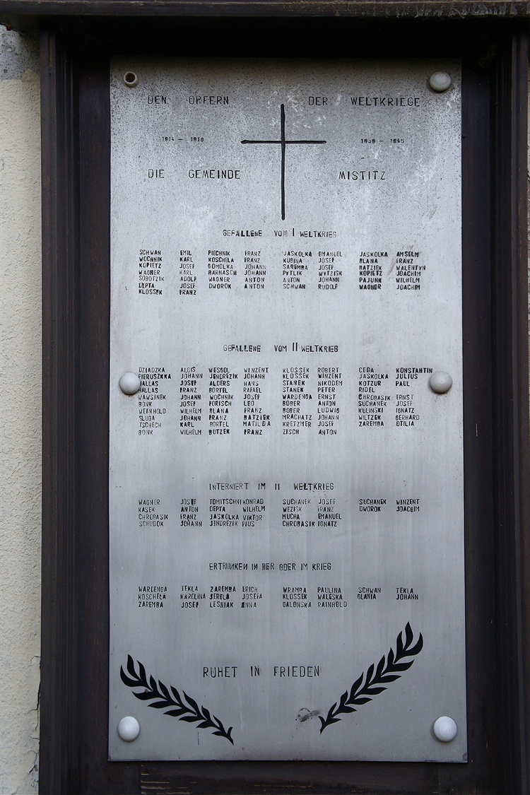 W Miejscu Odrzańskim, za drewnianym kościółkiem św. Trójcy, na lokalnym cmentarzu parafialnym, na ścianie dawnego mauzoleum rodu Reibnitz (obecnie kaplica cmentarna) wisi skromna tablica upamiętniająca miejscowe ofiary I i II wojny światowej. Na pierwszy rzut oka wygląda jak prowizoryczna, niestarannie zrobiona lista osób, które zginęły w wojnach. Z rozmów wynika, że została ufundowana około 10 lat temu. Brak jest informacji o inicjatorach akcji oraz dlaczego postanowiono uczcić pamięć ofiar właśnie, w ten, a nie inny sposób. Mimo swojej prostoty tablica jest wyjątkowa, ponieważ upamiętnia ofiary I, a także II wojny światowej wśród , których są wymienione z nazwiska i imienia osoby cywilne pochłonięte przez nurt Odry podczas wojennej przeprawy.