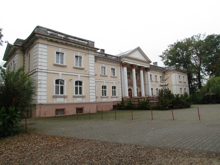 Budynek jest dwukondygnacyjny z dwoma bocznymi ryzalitami i attyką balustradową. Czterokolumnowy portyk wielkiego porządku, podtrzymuje trójkątny fronton. Pałac otacza piękny, zabytkowy 100 - letni park o powierzchni około 7 hektarów. Obecnie w starannie wyremontowanym (zwłaszcza wewnątrz ) budynku znajduje się ośrodek neurorehabilitacyjny.