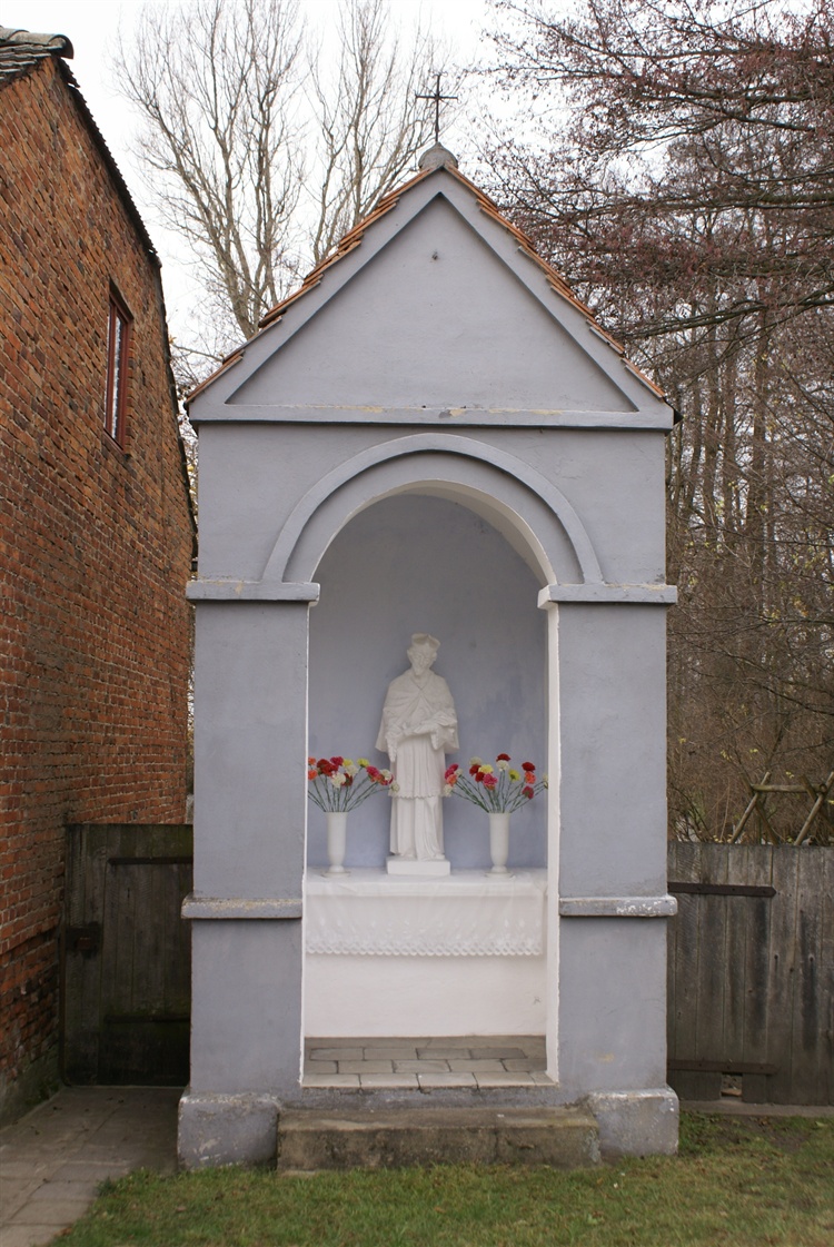 W miejscowości Nowa Brzeźnica przy drodze wzniesiona została murowana, otynkowana i bielona kapliczka nakryta dwuspadowym daszkiem. Wewnątrz kapliczki na betonowym ołtarzu umieszczona została pobielona figura świętego Jana ze wzrokiem utkwionym w krzyżu trzymanym w obu rękach. Kolorytu kapliczce niewątpliwie dodają dwa wazony z kolorowymi sztucznymi kwiatami.