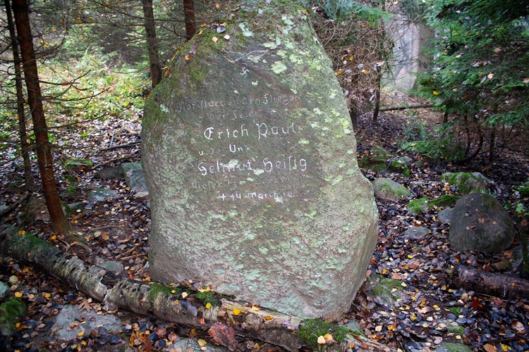 Na jednym ze wzgórz pomiędzy Glisnem a Trzemesznem Lubuskim, ukryty wśród drzew stoi olbrzymi kamień z wyrytym napisem. Z pewnym trudem można odczytać, że poświęcony jest pamięci feldwebla Ericha Rauta i unteroffiziera Helmuta Heiliga, którzy 14 marca 1944 r. zginęli w tym miejscu śmiercią lotnika. W podpisie widoczna nazwa miejscowości Messeritz (Międzyrzecz) i długie, nieodczytywalne słowo – być może określające jakieś stowarzyszenie, które ten nietypowy pomnik ufundowało. Wprawdzie w rejonie Międzyrzecza miała miejsce bitwa lotnicza, podczas której strącono kilka nie tylko niemieckich samolotów, ale było to w 1943 r. Poza tym mówi się, że ten właśnie, który tu upamiętniono był samolotem cywilnym.