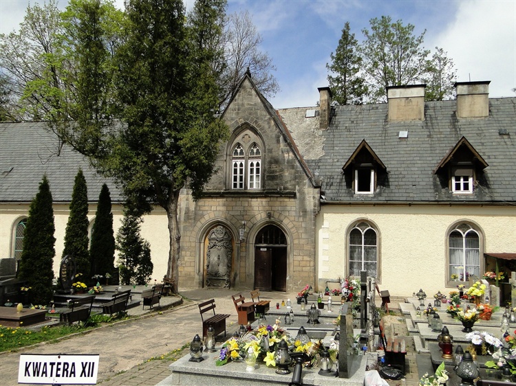Główne wejście na cmentarz prowadzi od ul. Wojska Polskiego przez kamienny mostek nad rzeką Płóczką, lewym dopływem Bobru. Na bramie cmentarza i ścianach kaplicy cmentarnej znajdują się epitafia z XVII i XVIII w.; część z nich przeniesiono z kościoła franciszkańskiego. Dużo starych grobowców zachowało się na starym południowym i zachodnim murze cmentarza. Są tu epitafia z XVII i XVIII w., ale także groby poległych w czasie I wojny światowej oraz zmarłych w latach 30-tych XX w.