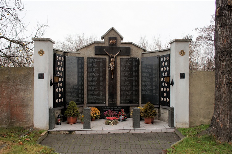W sąsiedztwie kościoła pw. św. Augustyna w Borucinie znajduje się okazały monument upamiętniający mieszkańców poległych w I i II wojnie światowej. Na centralnej ścianie pomnika umieszczono krzyż, a obok niego cztery tablice z blisko 150 nazwiskami tych, którzy zginęli w wojnach. Bardzo ciekawym elementem są dwie dodatkowe tablice, na których mieszczą się ceramiczne zdjęcia nagrobkowe przedstawiające zmarłych.