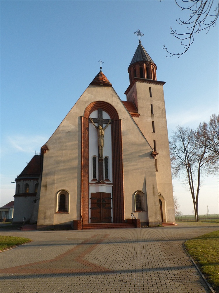 Świątynia drobnińska powstała w latach 1935-1936 na gruncie ofiarowanym przez Stefana Ponikiewskiego. Zaprojektowana została przez architekta Franciszka Morawskiego, który nadał jej neorenesansową formę. Jednonawowy kościół posiadał trzy absydy i wieżę. Kościół poświęcił kardynał August Hlond. W czasie okupacji Niemcy zorganizowali w świątyni magazyn. Niezniszczony w czasie wojny budynek kościoła już w 1945 r. wrócił do swej pierwotnej roli. W następnych latach przechodził modernizacje. Dziś wyróżnia się główną elewacją z imponującym krucyfiksem.