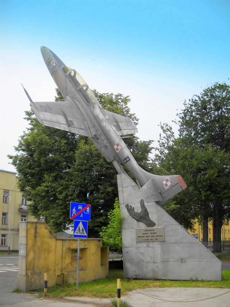 Przy ulicy Piłsudskiego, na cokole obok bramy koszarowej srebrzy się samolot "Ts - 11 Iskra". To jedyny dziś ślad po Technicznej Szkole Wojsk Lotniczych, która z Zamościem związana była ponad 50 lat. Powołano ją do życia jesienią 1944 roku jako Zjednoczoną Szkołę Lotniczą WP oraz 15-ty Samodzielny Zapasowy Pułk Lotniczy. Trzon kadry dydaktycznej stanowili wykładowcy rosyjscy, a jak twierdzą historycy wojskowi większość z nich to byli wysokiej klasy specjaliści, oddani sprawie lotnictwa polskiego. Promocja pierwszych absolwentów zamojskiej szkoły lotniczej odbyła się 18 maja 1945 r. Kurs ukończyło 27 słuchaczy, w tym 12 oficerów.Szkołę na okres 5 lat przeniesiono do podwarszawskiego Bemowa, po czym w 1950 roku powróciła do Zamościa.