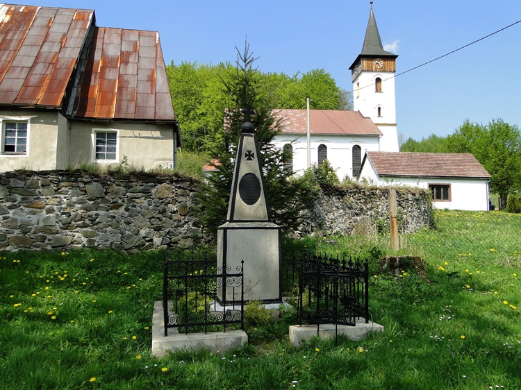 Mieszkańcy wsi wystawili pomnik przed murem cmentarnym przy kościołach. Po 1990 r. byli mieszkańcy Rohnau sfinansowali renowację pomnika poległych w I wojnie światowej 1914-1918. Pomnik jest w kształcie obelisku z plakietą i krzyżem żelaznym zakończonego kulą z krzyżykiem. Otoczony jest żelazną, ozdobną balustradą.