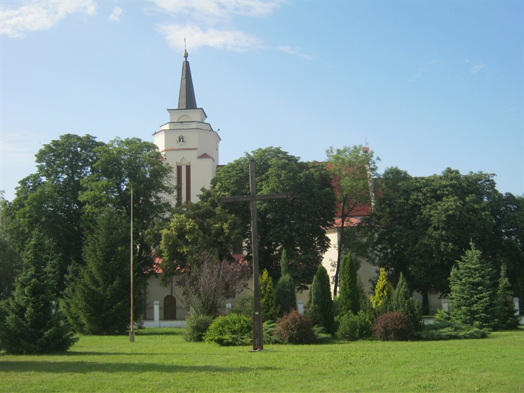 Był to kościół w stylu późnorenesansowym na planie krzyża, jednonawowy z dwiema kaplicami i wysoką wieżą, która była zwieńczona kopułą. W 1827 r. po trafieniu przez piorun wieża została obniżona do 6 metrów. W 1893 r. zostały dobudowane przez księdza Konstantego Waberskiego dwie nawy boczne i południowa zakrystia. W latach 1900-01 świątynia uzyskała polichromię. W latach 80 - tych XX w. została odnowiona polichromia.