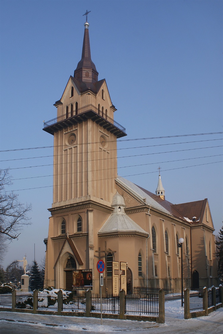 W okresie międzywojennym powstał „pomysł” - inicjatywa budowy murowanego kościoła. Rozpoczęte w 1921r. prace zakończono przed samą II wojną światową. Wznoszony w stylu neogotyckim, z elementami modernizmu, według projektu architekta Emanuela Rosta juniora stanął w sąsiedztwie drewnianej świątyni. Początkowo nie bardzo wiedziano co zrobić ze starym kościółkiem, ale ostatecznie zdecydowano, że pozostał na swoim miejscu jako obiekt małopolskiej drewnianej kultury sakralnej - do zakończenia wojny.