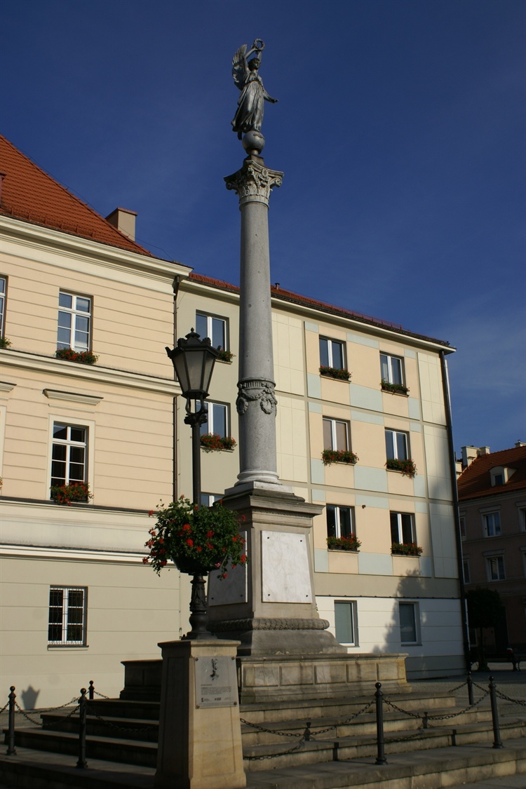 Kolumna Zwycięstwa została wzniesiona w 1873 r. Na szczycie 5 metrowej korynckiej kolumny wykonanej ze śląskiego marmur, ustawionej na kilkustopniowe, prostokątnej podstawie została umieszczona kamienna figura greckiej skrzydlatej Bogini Zwycięstwa. Bogini zstępująca na kulę ziemską, trzyma w prawej ręce laurowy wieniec - symbol zwycięstwa, a w lewej liść palmy - symbol męczeństwa.