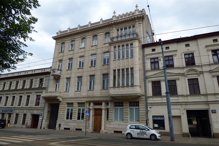 Kamienica znajdująca się przy ul. Piotrkowskiej 211 (d. numeracja 704) pierwotnie była własnością Icka Grossleita. Została wzniesiona w roku 1910 w stylu późnej secesji, według planów znanego architekta Gustawa Landau-Gutentegera. Twórcy wielu innych budynków w Łodzi m.in. Pałacu Juliusza Kindermanna, dawnej Szkoły Zgromadzenia Kupców .