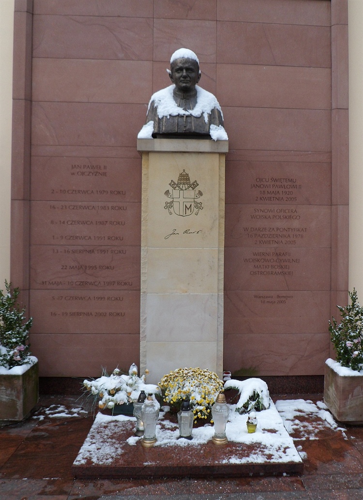 Miejsca upamiętnienia papieża Jana Pawła II nie mogło zabraknąć na Boernerowie. Okazją do jego odsłonięcia była śmierć Ojca Świętego w dniu 2 kwietnia 2005 r. Obelisk umiejscowiono przy wejściu do kościoła parafialnego. Boernerowski pomnik składa się z popiersia Jana Pawła II ustawionego na wysokim cokole z piaskowca. Po jego bokach znajdują się okolicznościowe tablice. Z jednej strony dokumentują one pielgrzymki papieża do Polski, z drugiej natomiast zawierają dedykację parafian o treści: "Ojcu Świętemu Janowi Pawłowi II, synowi oficera Wojska Polskiego, w darze za pontyfikat 16 października 1978-2 kwietnia 2005. Wierni parafii wojskowo-cywilnej Matki Boskiej Ostrobramskiej". Całość odsłonięto w dniu 18 maja 2005 r., w rocznicę urodzin papieża.