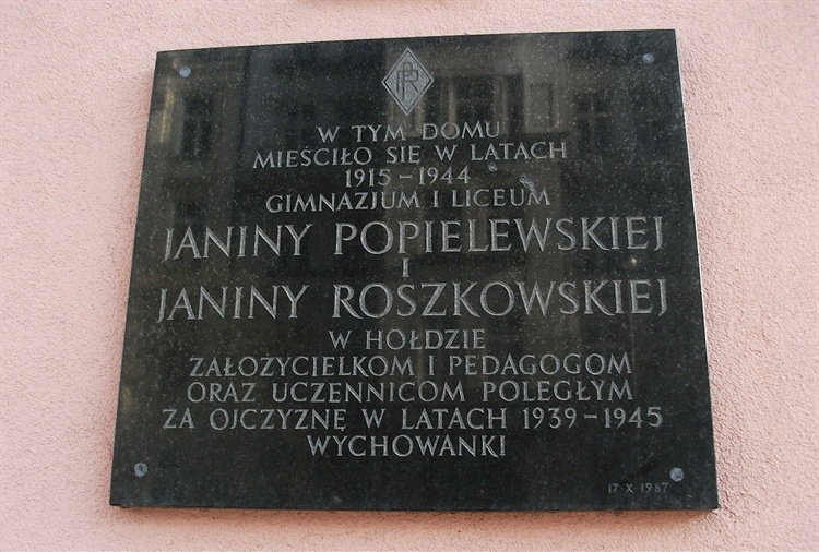 Na mapie przedwojennego szkolnictwa Warszawy wyróżnia się Żeńskie Prywatne Gimnazjum i Liceum prowadzone przez Janinę Popielewską i Janinę Roszkowską. Szkoła działała w kamienicy przy ulicy Bagatela 15 w latach 1915-1944. W czasie okupacji właścicielki zorganizowały nauczanie konspiracyjne pod szyldem szkoły krawieckiej. Pensjonariuszki gimnazjum i liceum wychowywane były w duchu patriotyzmu i szacunku dla Ojczyzny. Wiele z nich działało w harcerstwie, a w czasie wojny w konspiracji. Niektóre z nich zginęły w czasie Powstania Warszawskiego. W 1987 r. staraniem wychowanek szkoły odsłonięto na ścianie dawnej jej siedziby pamiątkową tablicę. Widnieje na niej treść "W tym domu mieściło się w latach 1915-1944 Gimnazjum i Liceum Janiny Popielewskiej i Janiny Roszkowskiej. W hołdzie założycielkom i pedagogom oraz uczennicom poległym za Ojczyznę w latach 1939-1945. Wychowanki".