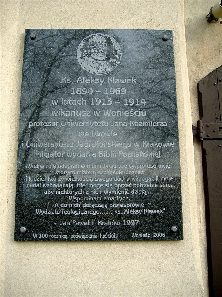 Ksiądz Aleksy Klawek urodził się w 1890 r. w Rogoźnie. Po ukończeniu seminariów w Poznaniu i Gnieźnie został księdzem w 1913 r. W latach 1914-1922 studiował na uniwersytetach w Munster, Monachium, Wrocławiu i Paryżu. Ukończył biblistykę, orientalistykę oraz asyrologię. Po powrocie do Polski został profesorem uniwersytetów we Lwowie i Krakowie. Specjalizował się m.in. w badaniach nad Starym i Nowym Testamentem. Z jego inicjatywy wydano "Biblię Poznańską". Osiągnięcia naukowe księdza Klewka cenił m.in. Karol Wojtyła, późniejszy papież Jan Paweł II. Ksiądz zmarł w 1969 r. w Katowicach, a pochowany został w rodzinnym Rogoźnie.