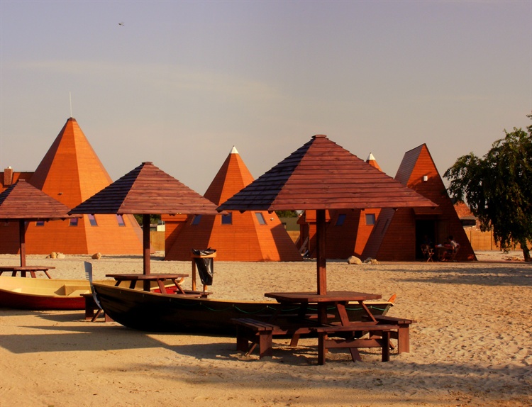 Egzotyka na Opolszczyźnie?:) …a jednak. Przyjeżdżając nad Jezioro Duże w Januszkowicach ma się wrażenie obcowania z odmienną kulturą, przebywania w niecodziennych klimatach. Już na wstępie zaskakuje widok połyskujących w słońcu piramid, można poczuć się jak na tropikalnej plaży. Całość wygląda świetnie, klimat iście egzotyczny…wigwamy, piramidy, złoty piasek i kojąca cisza.