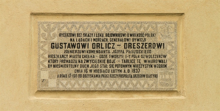 Tablica pamiątkowa poświęcona generałowi dywizji Wojska Polskiego Gustawowi Orlicz - Dreszerowi. Tablicę wmurowano w ścianę budynku klasztornego Ojców Pijarów w 1937 roku. Gustaw Orlicz - Dreszer był dowódcą 1. Pułku Szwoleżerów i komendantem okręgu wojskowego w Chełmie. Walczył o niepodległość Polski.
