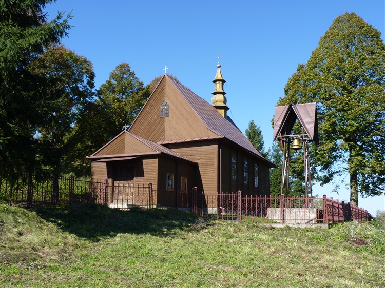 Kościół zbudowany został dzięki staraniom mieszkańców przysiółka w 1950 r. Wzniesiono go z drewna, ściany oszalowano deskami na tzw. zakładkę, a dach pokryto blachą. Obok świątyni stoi mała dzwonnica z jednym dzwonem.