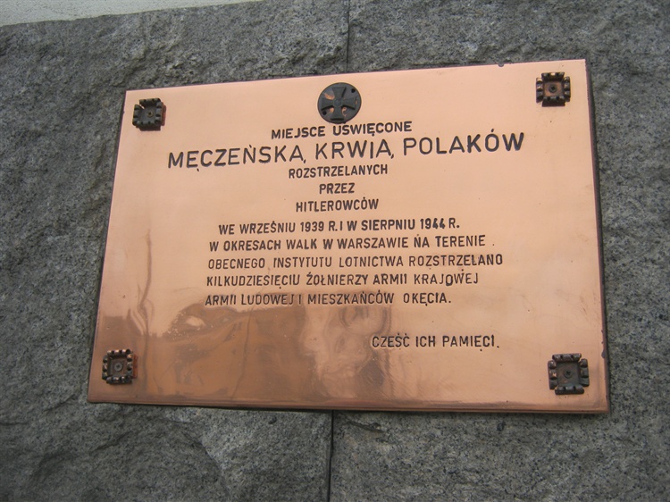 Na budynku Instytutu Lotnictwa przy Al. Krakowskiej 110/114 w warszawskiej dzielnicy Włochy znajduje się tablica pamięci. Tablicę umieszczono ku czci kilkudziesięciu żołnierzy Armii Krajowej, Armii Ludowej i mieszkańców Okęcia rozstrzelanych przez okupanta hitlerowskiego.na terenie obecnego Instytutu we wrześniu 1939 r. i sierpniu 1944 r..