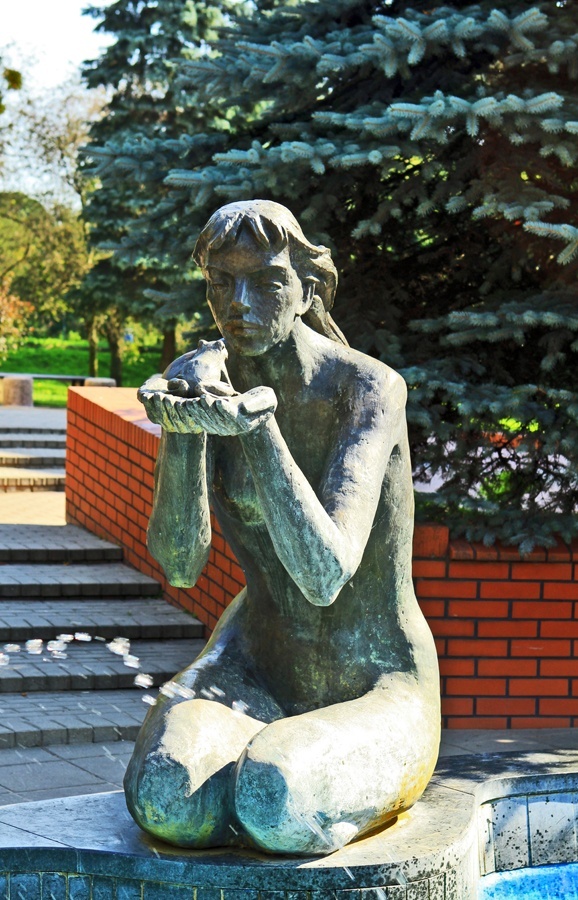 Fontanna przedstawiająca dziewczynę z żabką stoi przy Placu Grunwaldzkim przed dawnym kinem "Fala" w Giżycku. Rzeźba przedstawia nagą, klęczącą dziewczynę, trzymającą w dłoniach żabkę. Dziewczyna zwana jest Galindą i powstała dzięki miejscowej legendzie. Rzeźba z brązu stworzona została w 2001 roku przez artystę rzeźbiarza Andrzeja Morawskiego.