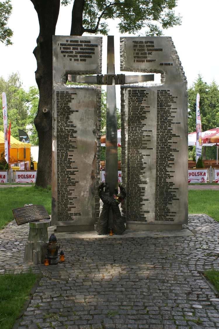 Pomnik - Krzyż Katyński został odsłonięty w dniu 22.04.2010 r., 70 lat po zbrodni katyńskiej. Postawiony został w hołdzie oficerom i funkcjonariuszom publicznym z terenu Ziemi Wadowickiej zamordowanym w 1940 r. w Katyniu. Centrum pomnika stanowi krzyż z napisem: "Katyń" oraz umieszczone u jego podstawy ręce związane drutem kolczastym trzymające łuski po nabojach. Na ustawionych z boku tablicach ulokowane zostały w porządku alfabetycznym nazwiska i imiona 250 bestialsko zamordowanych osób.