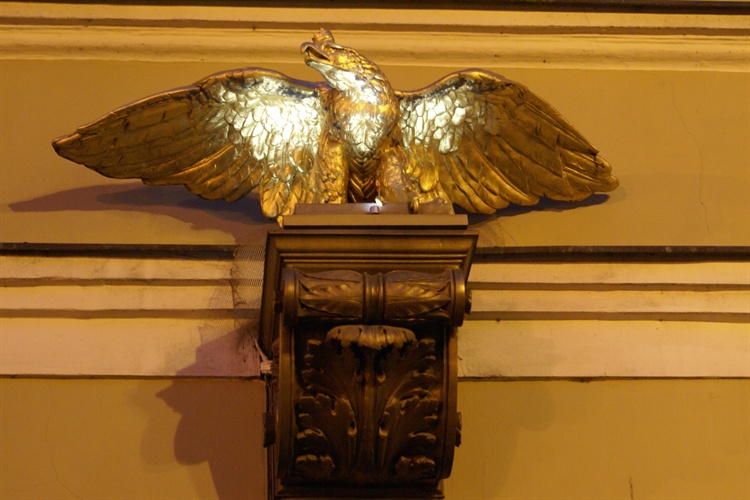 Budynek ten wzniesiony został na Rynku Staromiejskim w XV w. i przebudowany w stylu klasycystycznym około 1830 r. W budynku znajdowała się najstarsza w mieście apteka założona przez przybyłego w XIV w. z Wrocławia aptekarza Arnolda. 23.02.1652 r. w wyniku przywileju apteka otrzymała nazwę "Apteka Królewska". W XIX w. obok wejścia do apteki, na ozdobnej przyściennej podstawie umieszczona została figura orła. Od tego czasu apteka nazywana jest również "Apteką pod Orłem".