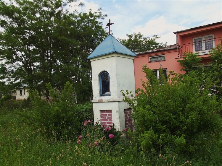 W jedynej wnęce kapliczki znajduje się drewniana figurka. Długo się zastanawiałem, co ona przedstawia. W swoich poszukiwaniach dotarłem do leżącego obecnie na terenie województwa kujawsko-pomorskiego, aczkolwiek należącego do historycznego Mazowsza, Skępego. Tam w Sanktuarium Maryjnym (konkretnie w maleńkiej wiosce Wymyślin – 1,5 km od Skępego), w zabytkowym kościele OO. Bernardynów znajduje się mierząca 93 cm wysokości, cudowna i słynąca łaskami figurka Matki Boskiej Królowej Mazowsza i Pani Skępskiej. Wykonana w 1496 r. z lipowego drewna w stylu gotyckim przedstawia Matkę Bożą jako młodą dziewczynę w stanie błogosławionym ze złożonymi na piersi rękoma. Na głowie ma złotą koronę i ubrana jest w jedwabny płaszcz (od 1955 r.) tkany w złote wzory.