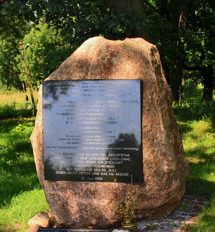 Na terenie zespołu pałacowo-parkowego w Sztynorcie stoi pomnik - kamień poświęcony pamięci Henryka hrabiego Lehndorffa, ostatniego właściciela pałacu w Sztynorcie. W 1944 roku Heinrich von Lehndorff został stracony za udział w spisku przeciwko Hitlerowi. W setną rocznicę urodzin hrabiego Lehndorffa 22 czerwca 2009 roku na terenie przypałacowym uroczyście odsłonięto pamiątkowy kamień.