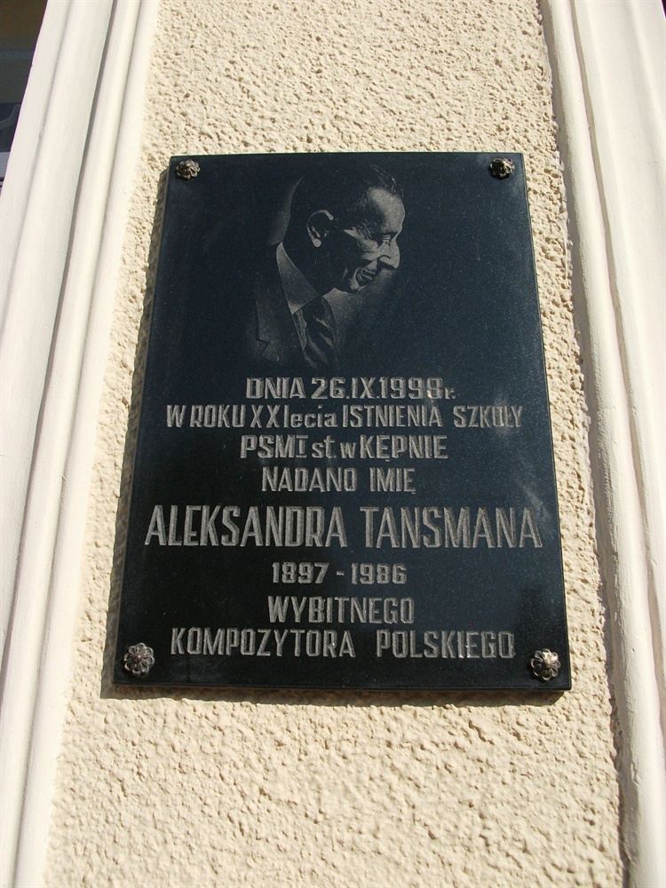 Fundowane na różne okazje tablice pamiątkowe są doskonałą okazją do przypomnienia wielu znanych dawniej osób, a z czasem zapominanych i nieznanych następnym pokoleniom. Taką osoba jest Aleksander Tansman, który został w 1998 r. patronem Państwowej Szkoły Muzycznej w Kępnie. Warto przytoczyć kilka informacji o jego osobie.