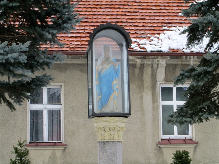 W Osiecznej na skrzyżowaniu, tuż za Rynkiem, jadąc do głównej plaży znajduje się budynek, w którym siedzibę ma Caritas parafii Świętej Trójcy. W ogrodzie przed budynkiem dostrzec można oszkloną kapliczkę z figurą Matki Boskiej. Figura umieszczona jest na kolumnie przypominającej nieco styl koryncki.