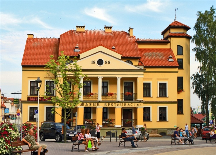 Hotel i restauracja "Mazur" stoi nad Jeziorem Mikołajskim przy Placu Wolności 6. Przed wojną w budynku mieściła się restauracja, później ratusz, a obecnie funkcjonuje tu Hotel "Mazur". Obiekt pochodzi z drugiej połowy XIX wieku, z 1888 roku. Budynek był kilka razy przebudowywany. Do tylnej części dobudowano jedno skrzydło. Do bocznej części od strony ulicy Michała Kajki dostawiono wieżę. Od frontowej strony budynku znajduje się dwukondygnacyjny portyk z widniejącą datą budowy obiektu.