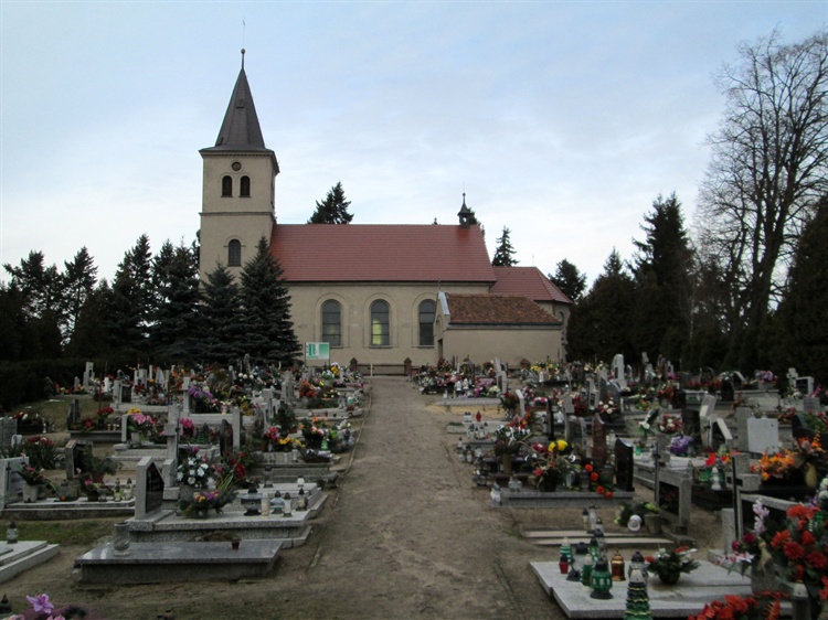 Cmentarz parafialny w Radomicku znajduje się przy kościele pw. Jana Chrzciciela. Parafia ta jest jego administratorem. Oprócz nagrobków na uwagę zasługuje drewniany krzyż znajdujący się na końcu cmentarza. Poświęcony został w 2000 roku przez arcybiskupa metropolitę poznańskiego Juliusza Paetza.