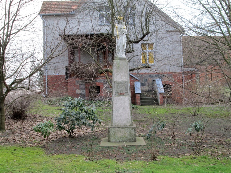 Przy kościele pw. Jana Chrzciciela w Radomicku znajduje się figura Matki Boskiej ufundowana w 1960 roku. Zauważymy ją z ulicy tuż za kościołem, jadąc od krajowej piątki, w ogrodzie przed plebanią. Jest to piękna figura Matki Boskiej Królowej Polski z Dzieciątkiem. Na głowie umieszczona jest korona w kolorze złotym. W prawej dłoni Matka Boska trzyma berło, natomiast na lewym przedramieniu Dzieciątko Jezus. Na cokole pod figurą umieszczono tabliczkę z datą jej ufundownia.