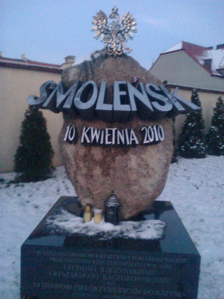 "W hołdzie ofiarom katastrofy pod Smoleńskiem. Prezydentom Rzeczypospolitej Polskiej Lechowi Kaczyńskiemu i Ryszardowi Kaczorowskiemu oraz 94 osobom pielgrzymującym do Katynia" - ten hołd przeczytamy na obelisku poświęconym Ofiarom Katastrofy pod Smoleńskiem. Około półtora metrowy pomnik został odsłonięty 15 sierpnia 2011r.