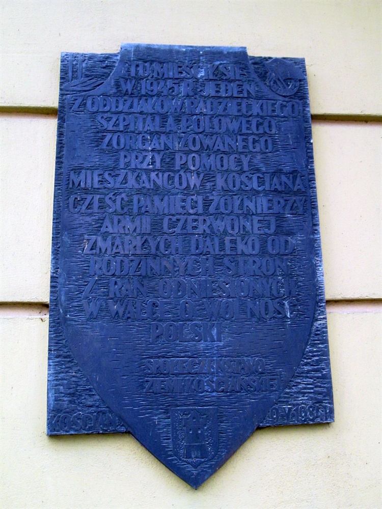 Pod koniec II wojny światowej w Rynku pod numerem 19 w Kościanie mieścił się jeden z oddziałów radzieckiego szpitala polowego. Zorganizowany został przy pomocy mieszkańców miasta. Na budynku tym znajduje się tablica pamiątkowa poświęcona żołnierzom radzieckim, którzy zginęli na frontach wojennych, daleko od swojej ojczyzny. Ufundowana została 9 maja 1984 roku.