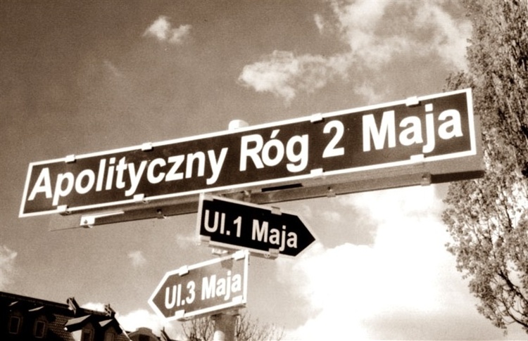 Czy to istnieje naprawdę? Tak, to skrzyżowanie ulic 1 Maja z ul. 3 Maja w Elblągu. Chodź to nazwa nieoficjalna ale utrwalona w świadomości elblążan nawet nie wiecie jak bardzo. Złożono nawet formalny wniosek o stworzenie "Apolitycznego Rogu 2 Maja" ale władze nie potraktowały go zbyt serio i nigdy nie otrzymano odpowiedzi. Nazwa funkcjonuje od czasu happeningu zorganizowanego 2 maja 1999 roku przez Radio EL w Elblągu. Po pewnym czasie urzędnicy elbląscy kazali zdjąć ową tabliczkę. I tak w grudniu 2005 roku zniknęła ale zaledwie na kilka dni. Po protestach mieszkańców i poruszeniu sprawy w lokalnych mediach powróciła na swoje miejsce i jest tu do dziś...