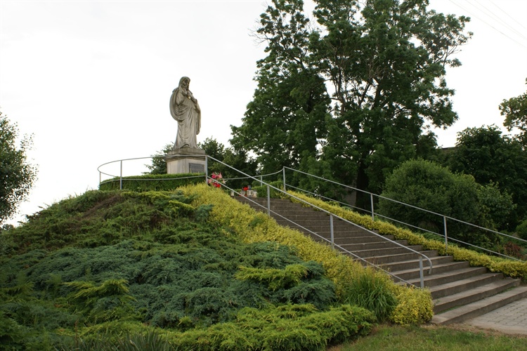 Nieopodal drewnianego kościoła p.w. św. Urszuli na prostym postumencie stoi kamienna figura Jezusa Chrystusa. Na przytwierdzonej do postumentu tablicy umieszczony został fragment psalmu 103.8 " MIŁOSIERNY JEST PAN I ŁASKAWY". Pomnik postawiony jest na sztucznie usypanym wzniesieniu.