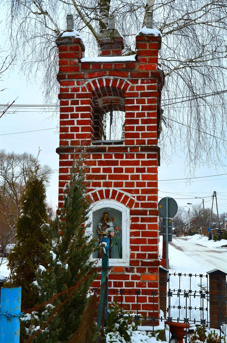 W centrum tej miejscowości odnajdziemy dobrze utrzymaną, murowana z czerwonej cegły neogotycką kapliczkę. Jest to dość wysoka trzykondygnacyjna budowla, najniższa bazowa część zawiera pełnołukowe nisze, są one zamknięte drewnianymi i przeszklonymi drzwiami a wewnątrz tych nisz umieszczono współczesne figury. Górna kondygnacja to czterokierunkowy prześwit i zapewne kiedyś mógł być tu umieszczony dzwonek, obecnie w prześwitach umocowano krzyże. Całość nakryta jest płaskim daszkiem z pięcioma dużymi sterczynami.