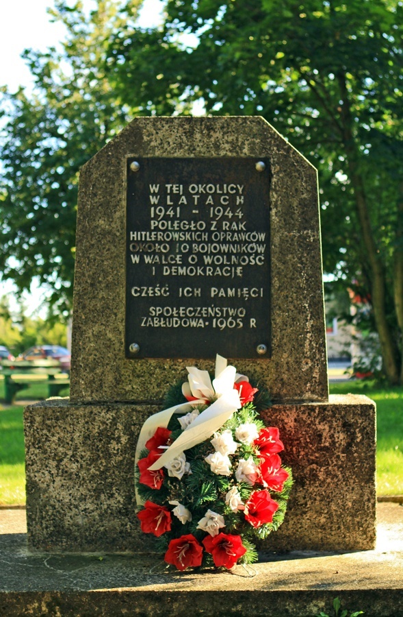 Na zabłudowskim rynku stoi pomnik poległych w latach 1941-1945. Podczas II wojny światowej w okolicy Zabłudowa około dziesięciu bojowników walczących o wolność i demokrację zginęło z rąk hitlerowców. Ku pamięci bojowników w 1965 roku społeczeństwo Zabłudowa ufundowało pomnik z pamiątkową tablicą.