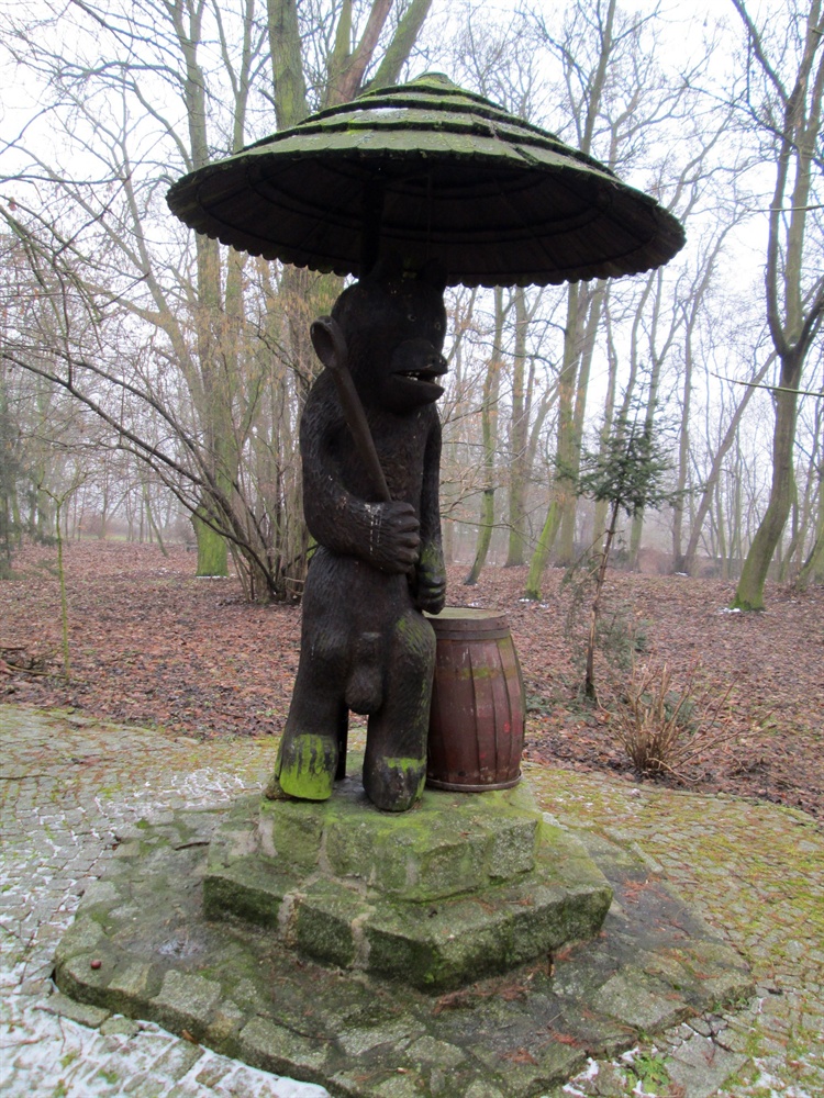 Spacerując po parku znajdującym się przy pałacu w Witosławiu, natrafimy na rzeźbę niedźwiedzia. Sympatyczny zwierzak w ręku trzyma kopyść służącą mu zapewne do nakładania miodu z beczki stojącej przy jego lewej nodze. Wiadomą bowiem sprawą jest, że miód jest przysmakiem niedźwiadków. Nic w tym dziwnego, ponieważ rzeźba ta mieści się na terenie ośrodka apifitoterapii słynącego z własnej pasieki i produkcji różnego rodzaju produktów wytwarzanych na bazie miodu.